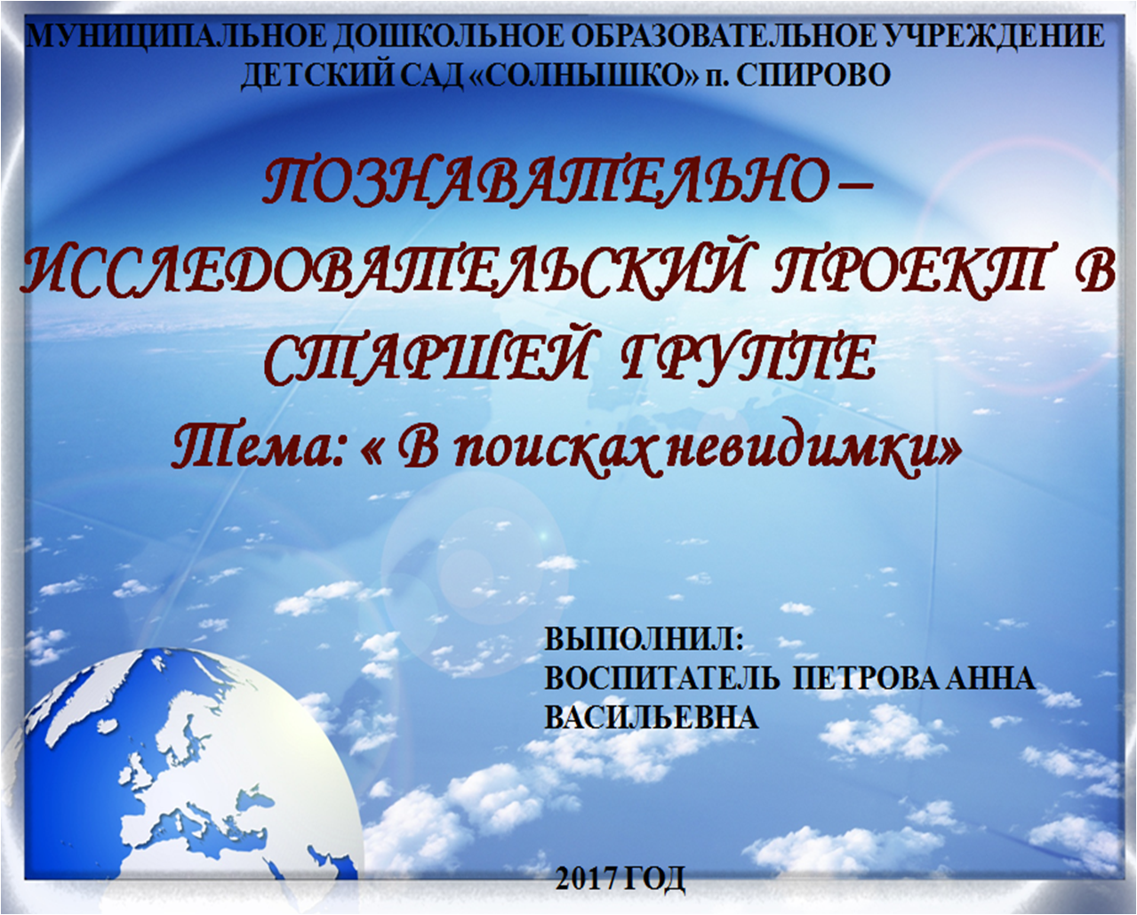 Познавательно - исследовательский проект "В поисках невидимки" |