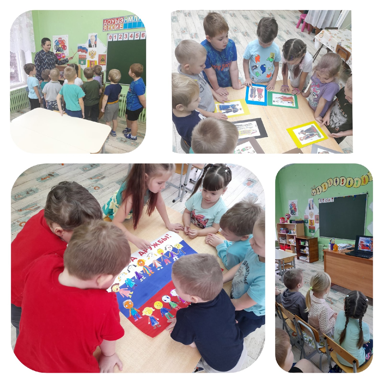 В преддверии праздника в старшей группе была проведена беседа "Вместе мы непобедимы". В ходе беседы дети познакомились с историей возникновения праздника.