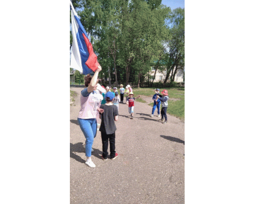 В этот день ребята вспомнили официальные символы России: флаг, герб и гимн. В торжественном молчании и с гордостью стояли маленькие россияне, слушая гимн своей великой страны, узнали о том, что государство, на гербе которого изображен орел, сильное и непобедимое, а из кругов белого, синего и красного цвета ребята собрали российский триколор.