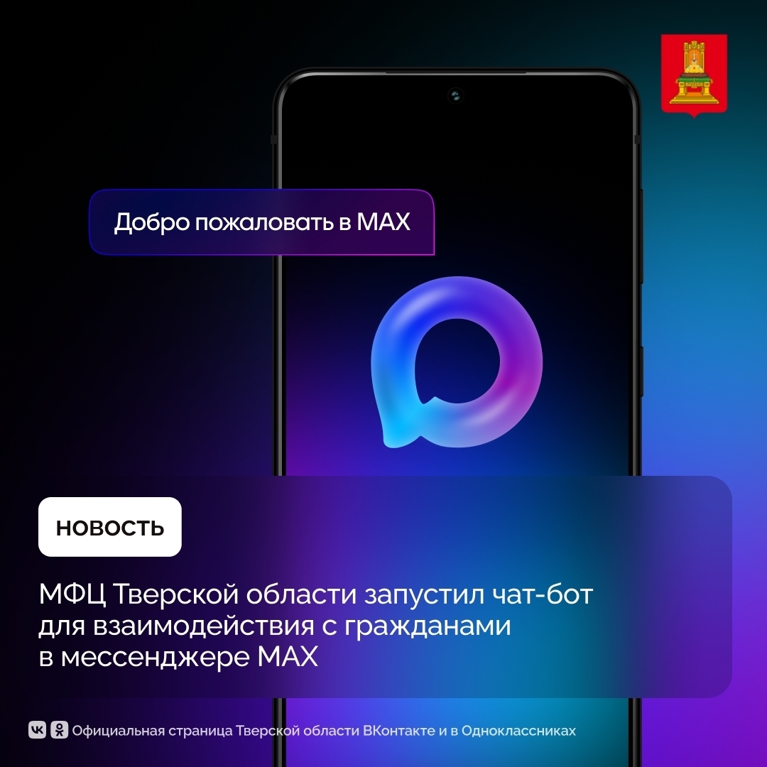 МФЦ Тверской области продолжает внедрять цифровые технологии. Одно из новшеств – запуск в работу чат-бота в мессенджере MAX, который призван обеспечить взаимодействие с гражданами в режиме 24/7, сделать его более простым, быстрым и комфортным.