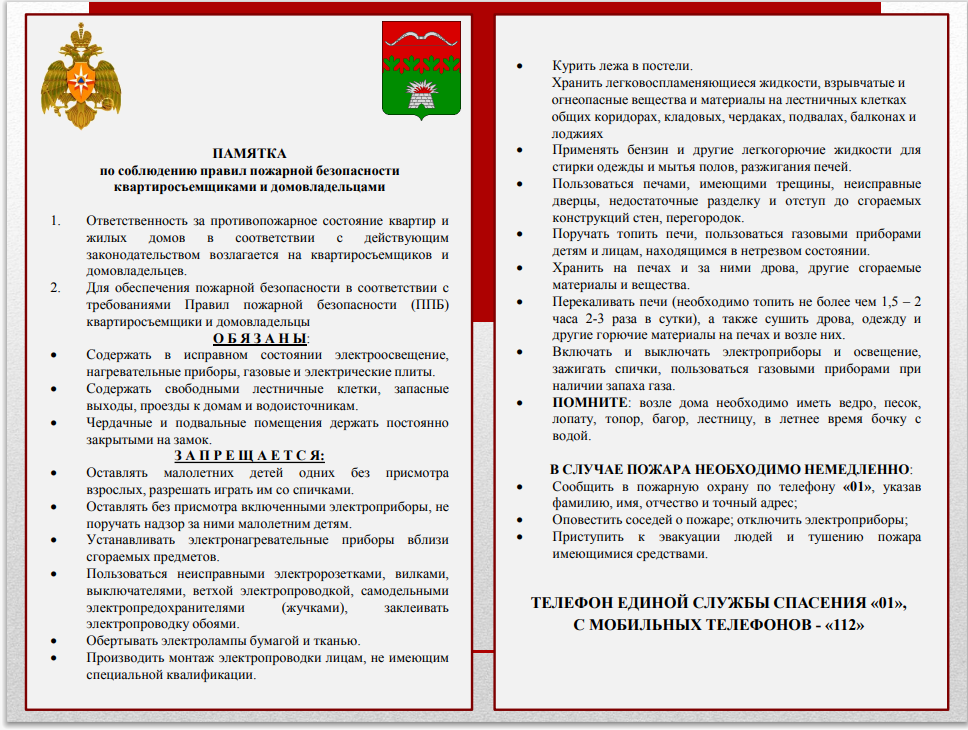 Буклет "Памятка о соблюдении основных мер пожарной безопасности"